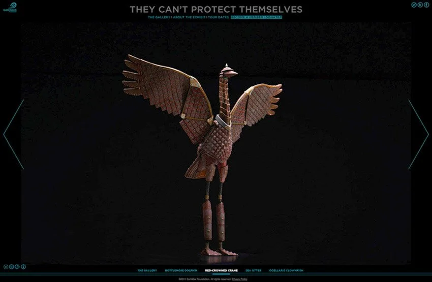 to build life-size suits of armor for a Dolphin, clownfish, Sea Otter, and Crane.